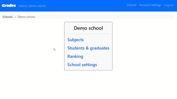 Grades is a web application I developed that allows school admins to manage student marks across different subjects in an organized and user-friendly way. The app is designed for small to medium-sized schools that need a simple solution for tracking grades and academic performance.