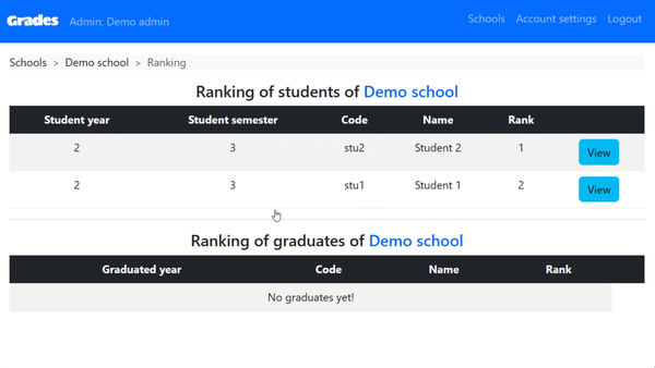 View the live demo at gradesapp.azurewebsites.net