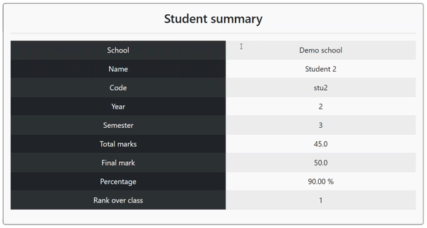 - Comprehensive tracking of grades, percentages, and class rankings for each student