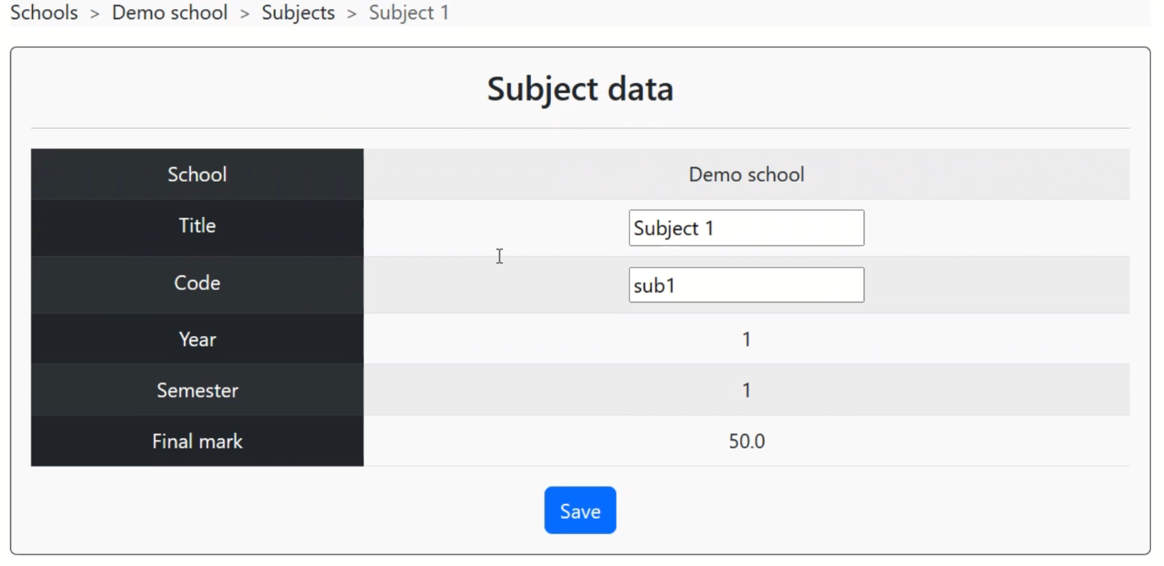Grades is a web application I developed that allows school admins to manage student marks across different subjects in an organized and user-friendly way. The app is designed for small to medium-sized schools that need a simple solution for tracking grades and academic performance.